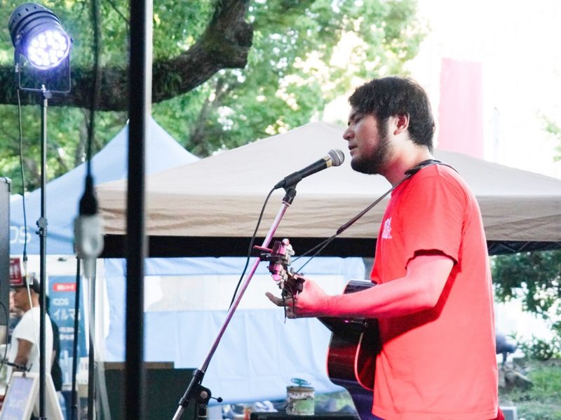 大きな身体から繊細であたたかい声と、指弾きと得意とするギターテクニック。